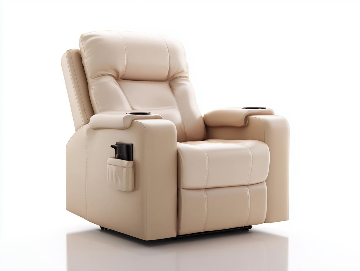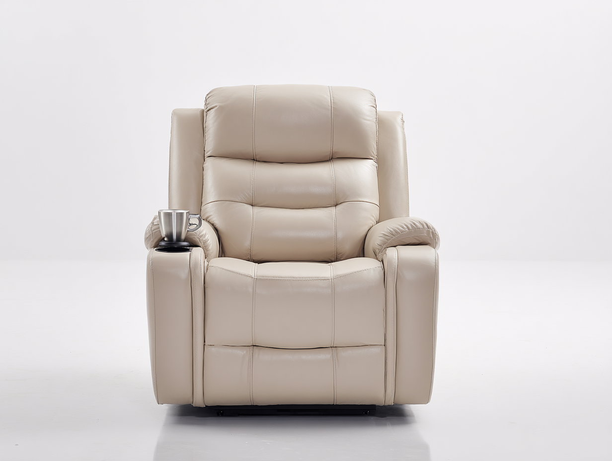 Poltrona reclinabile in vera pelle 100x95x105cm - beige - per soggiorno - con portabicchiere e comfort ergonomico
