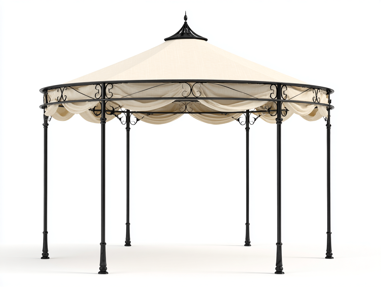 Gazebo da giardino in metallo con telo 360x360x290cm - nero/crema - per esterno - stile classico decorativo