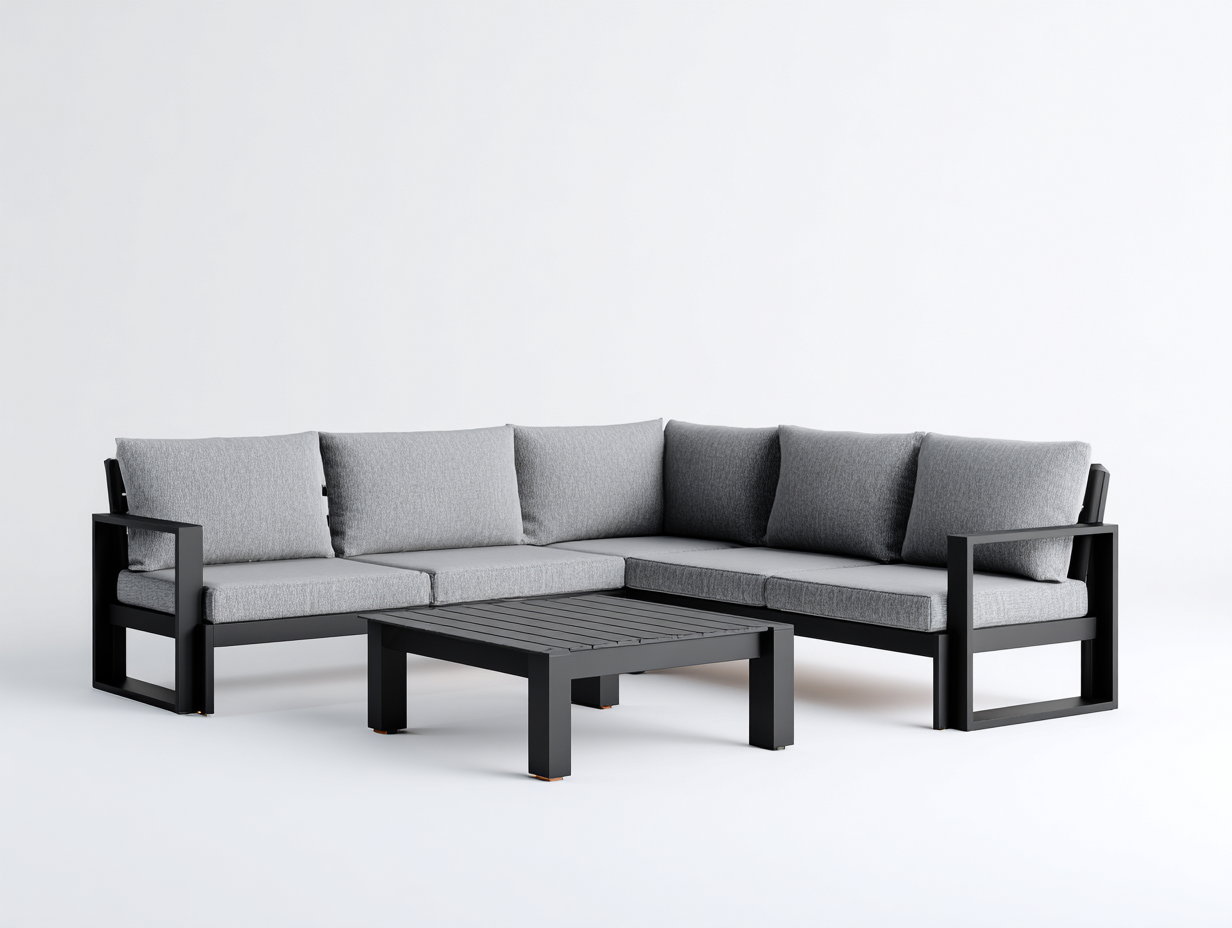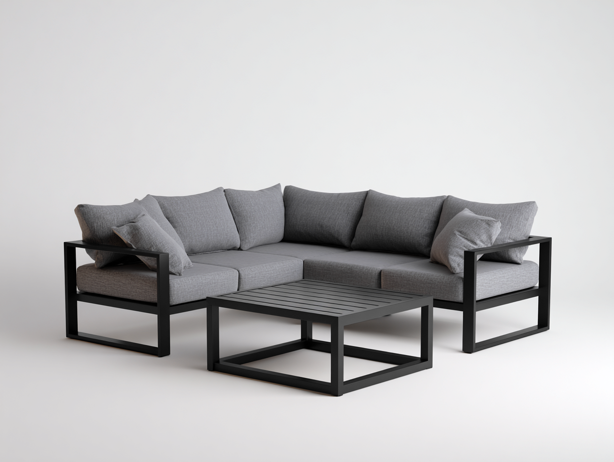 Set divano e tavolino da giardino in metallo - divano 225x165x75 cm - nero/grigio - per giardino - area relax con struttura moderna