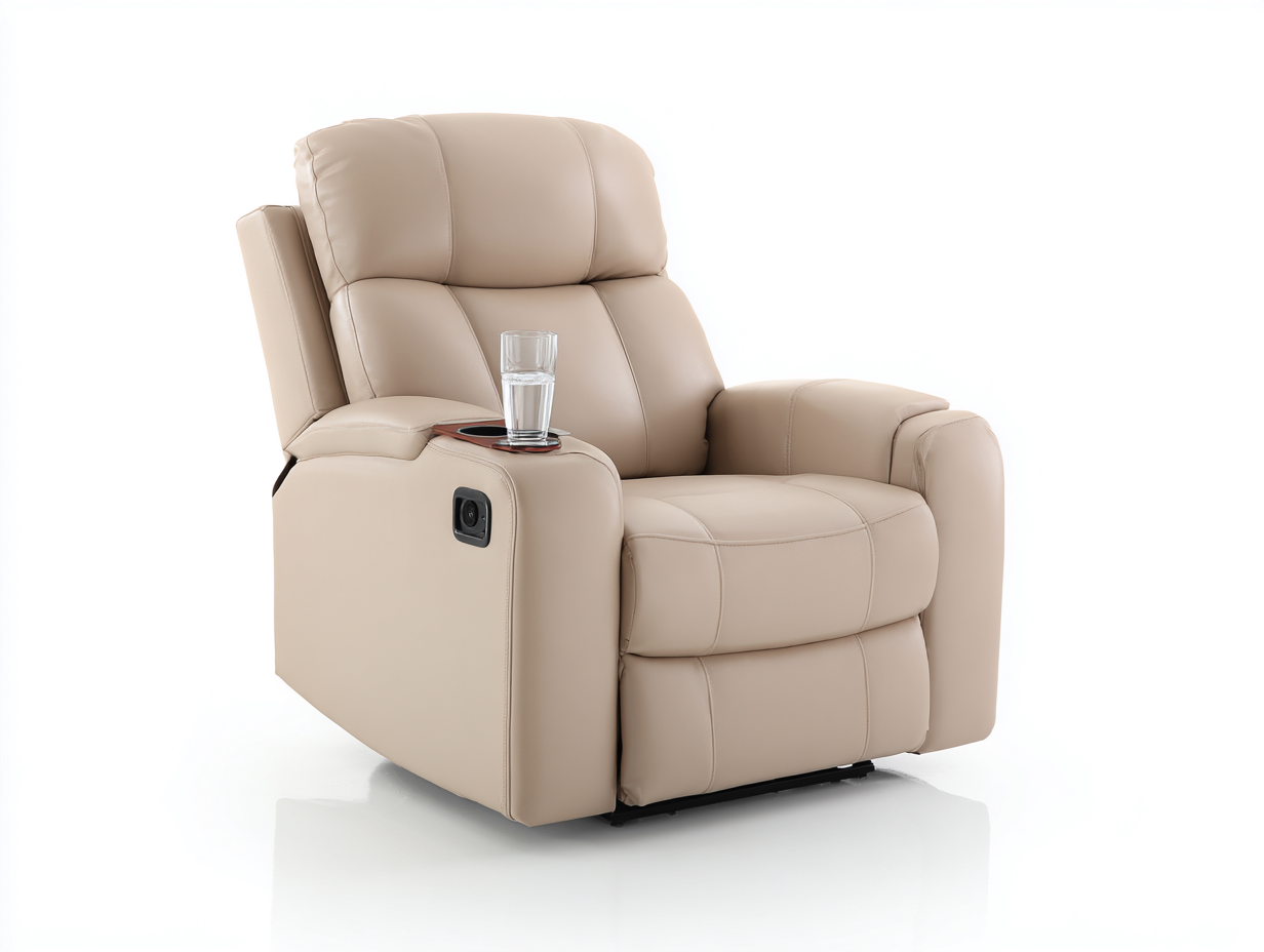Dotata di meccanismo reclinabile che consente di estendere il poggiapiedi e inclinare lo schienale per una posizione di relax. Il bracciolo integra un portabicchiere, utile per l'uso quotidiano.